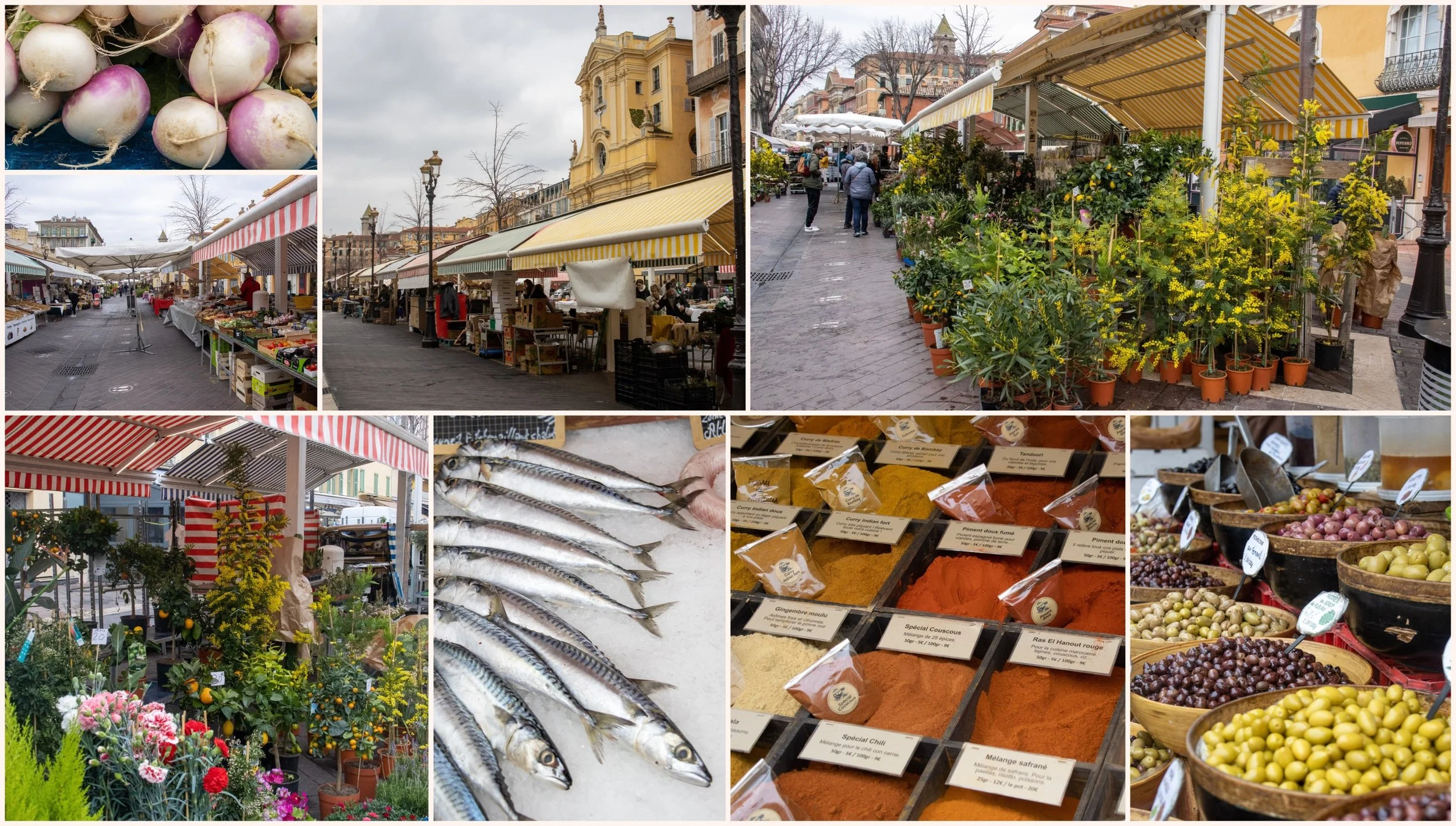 Wir waren natürlich auch auf dem schönsten Markt Nizzas, dem Blumenmarkt. Aber auch Obst und Gemüse gibt es dort und auch wir Touristen werden dort fündig wenn es um Mitbringsel geht. Ein wenig abseits gibt es dann auch Fisch und Fleisch, alles was man auf einem Markt so braucht.