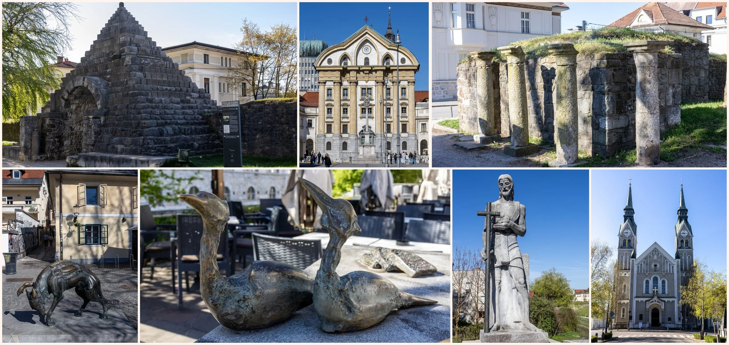 Dann bin ich noch an den letzten Resten der römischen Stadtmauer von Emona vorbei gekommen. Leider wurde hier vom Architekten Jože Plečnik die Befestigungsanlagen “erneuert” - römisch ist da nur mehr das Baumaterial (siehe unten links und rechts in der oberen Reihe).