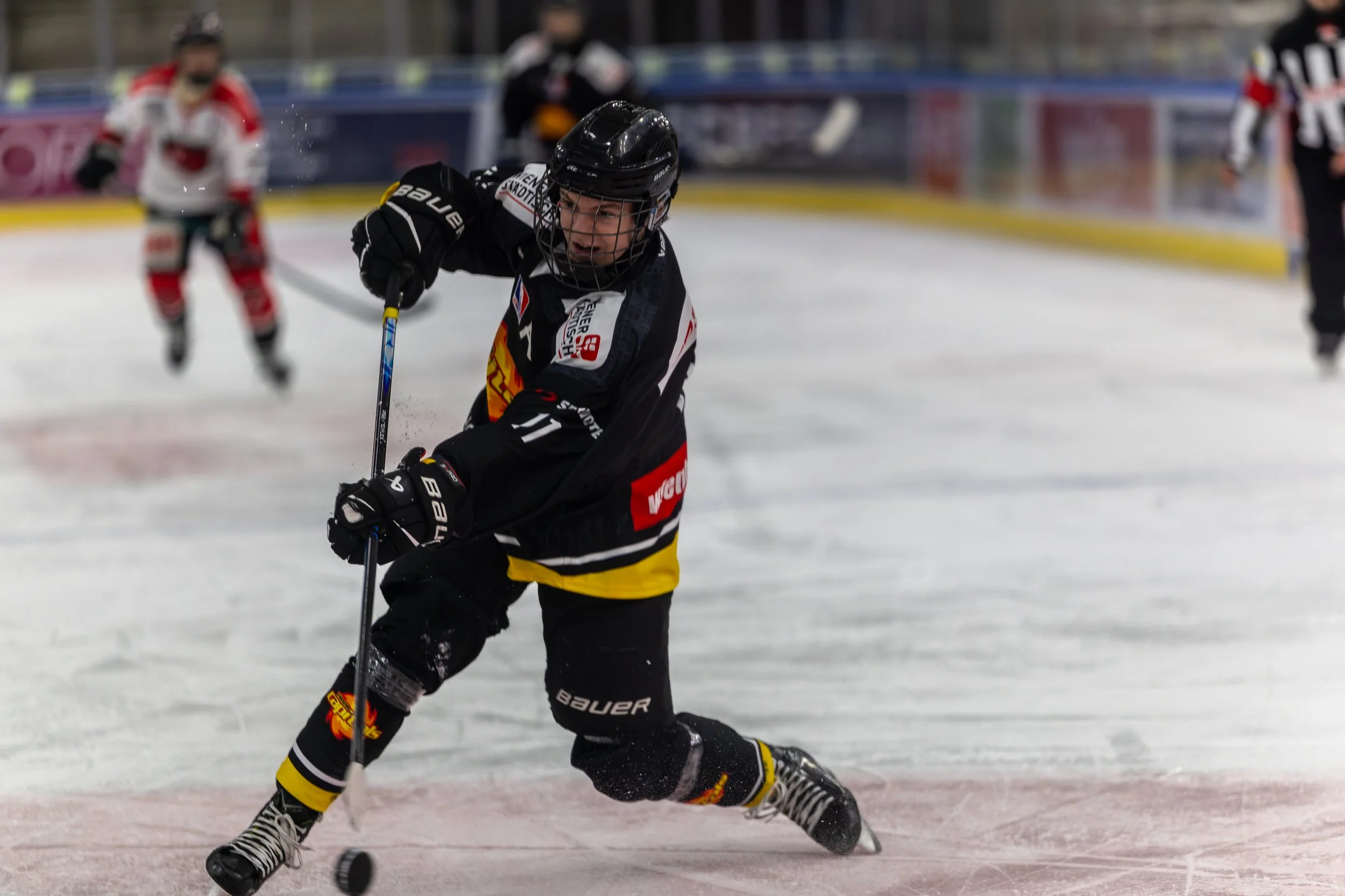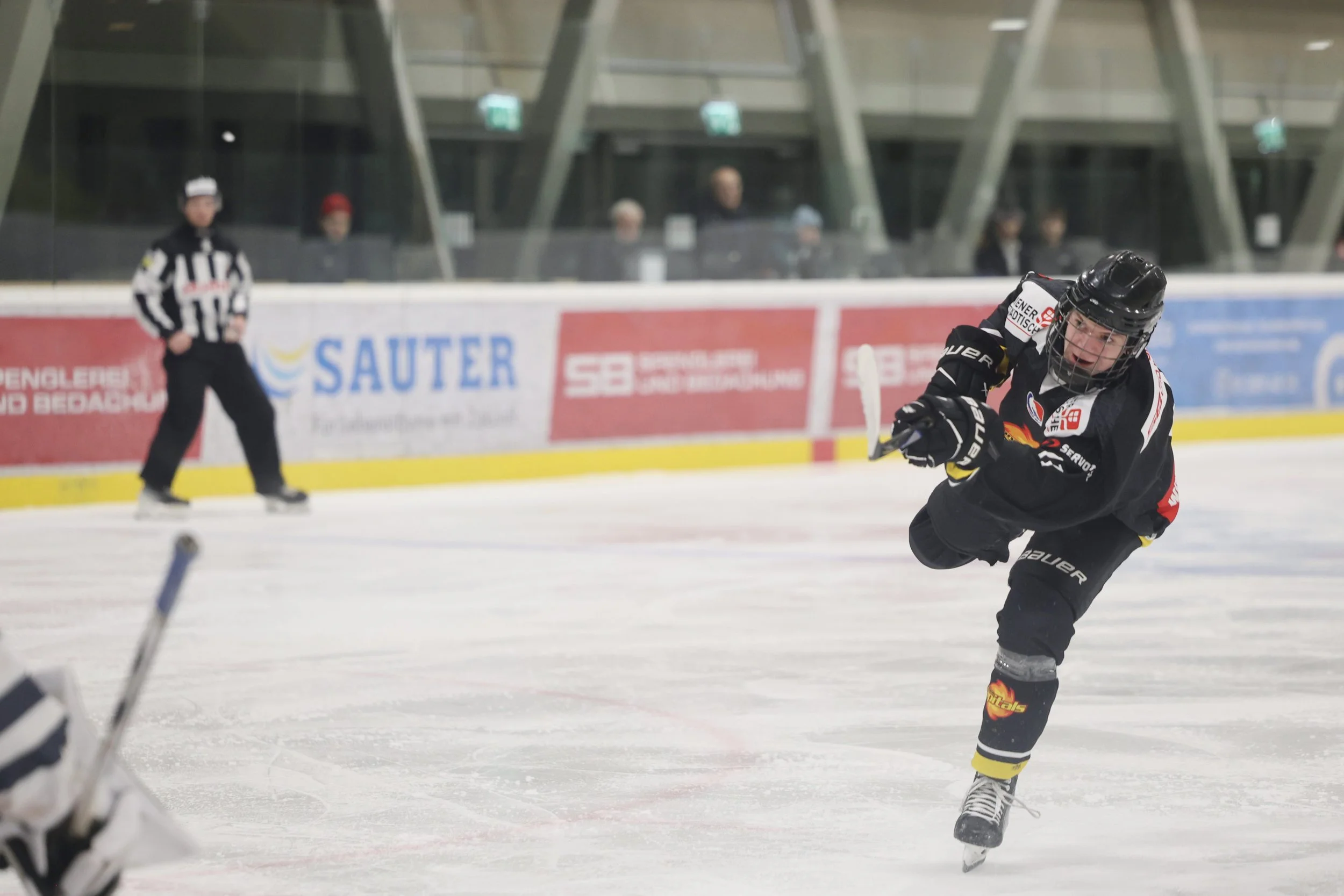 Man könnte meinen ich bin nur mehr beim Eishockey - und das stimmt sogar! Heute gleich bei 2 Spielen. Hier mein Neffe Patrick, beim Schuss zum 1:0.