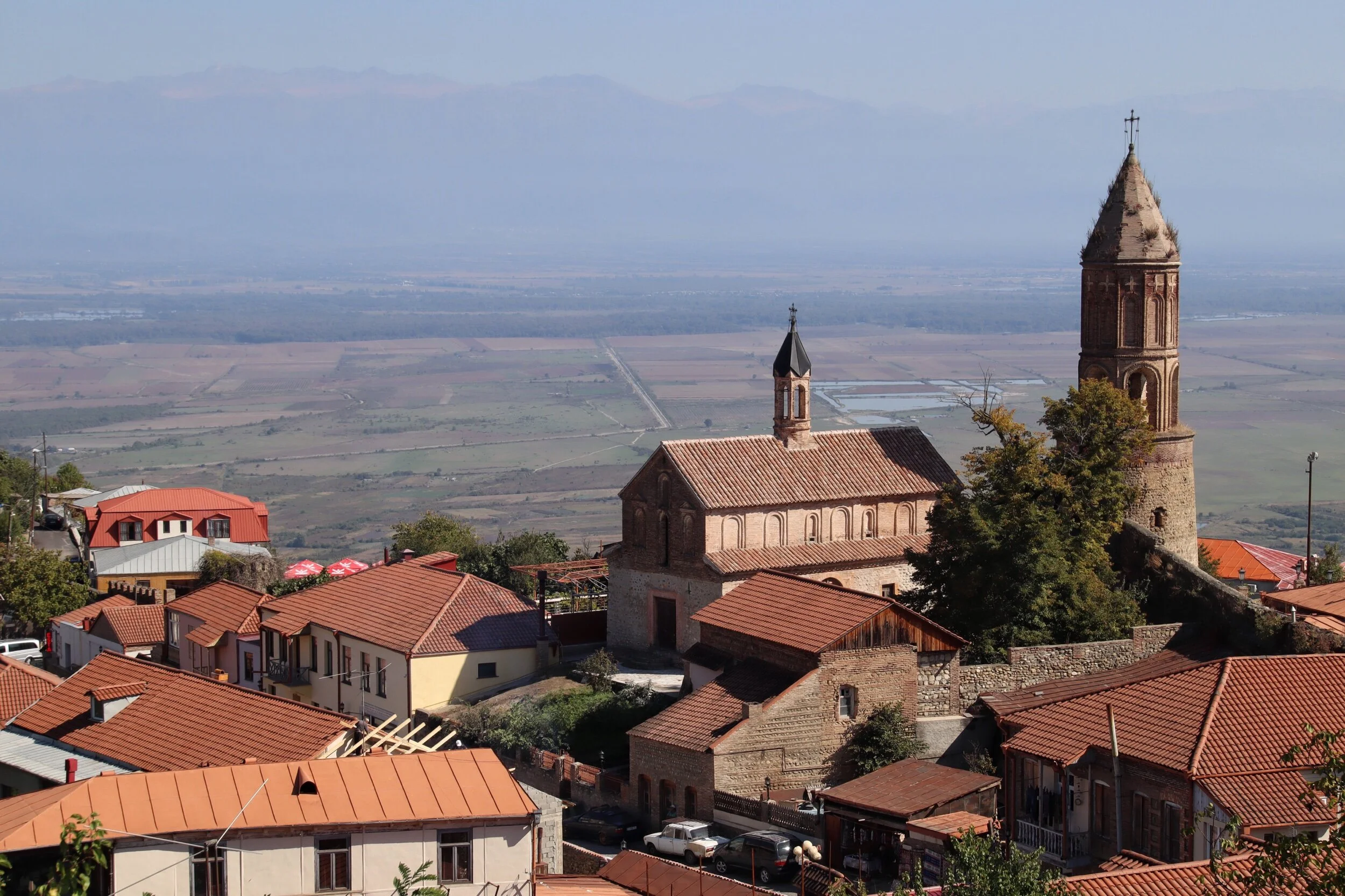 Heute sind wir in der Region Kachetien unterwegs. Wir haben die Basilika in Bodbe besucht, dort ist die heilige Nino begraben. Waren bei einer Weinverkostung und haben eine Adelsvilla besucht. Das heutige Foto zeigt die Stadt Sighnaghi.