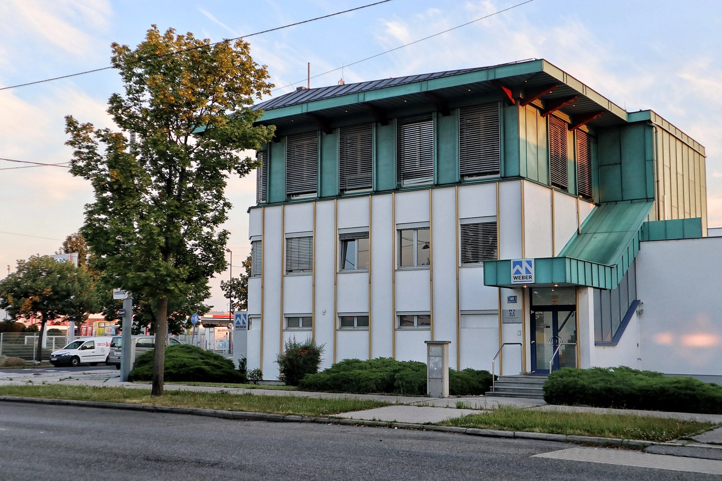 Heute gibt es ein Foto eines der Häuser im Industriegebiet, das auf meinem täglichen Weg zur Firma liegt. Ich mag dieses Gebäude weil es mich durch die klaren Linien und auch durch die Farbgebung an die Wiener Moderne erinnert.
