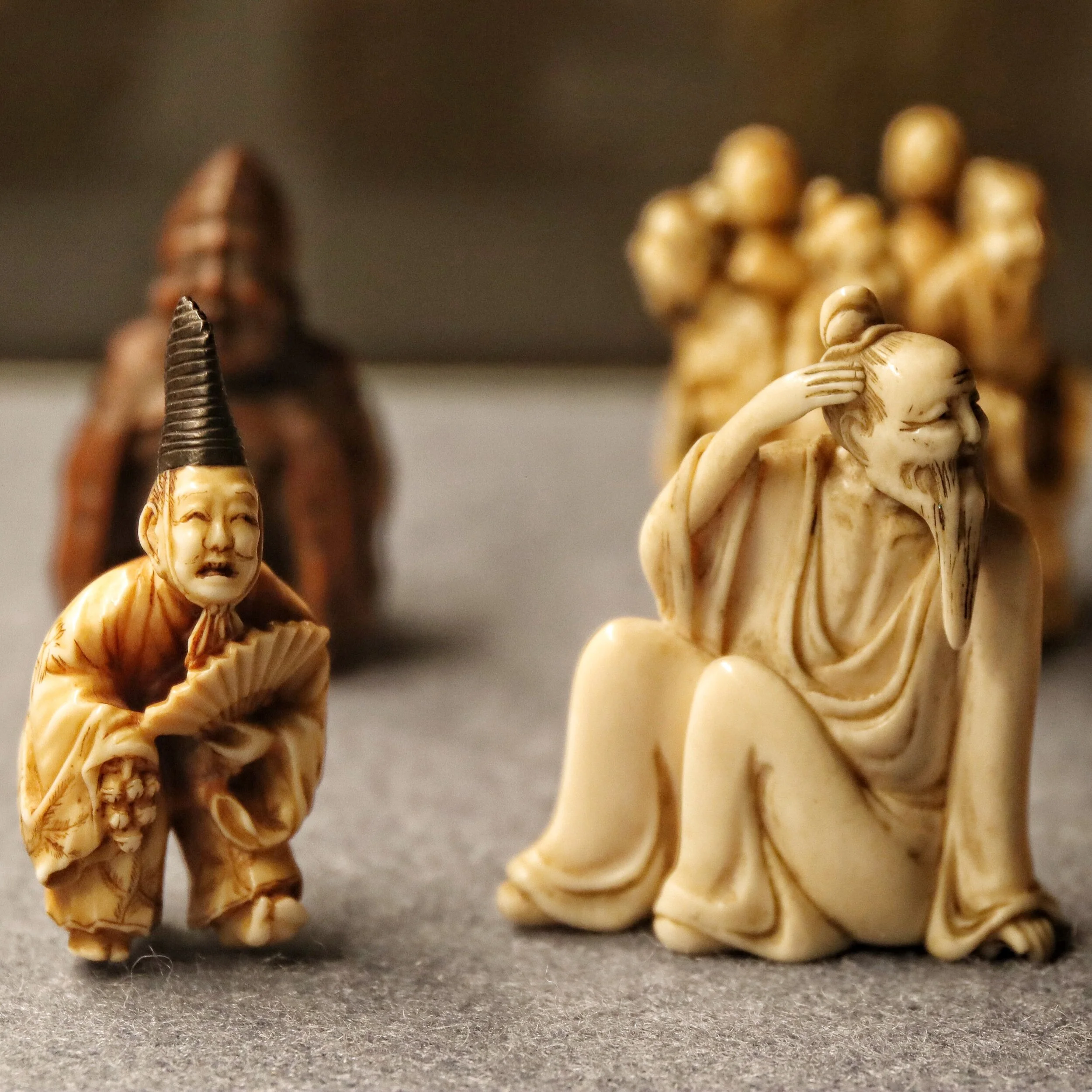 Heute war ich im Jüdischen Museum und habe mir die Ausstellung „Die Ephrussis - Eine Zeitreise“ angesehen. Ich lese zur Zeit das Buch eines der Nachfahren „Der Hase mit den Bernsteinaugen“ das ich im übrigen nur empfehlen kann. Das heutige Foto zeigt ein paar der Netsuke, Teil der Ausstellung und Teil des Buches.