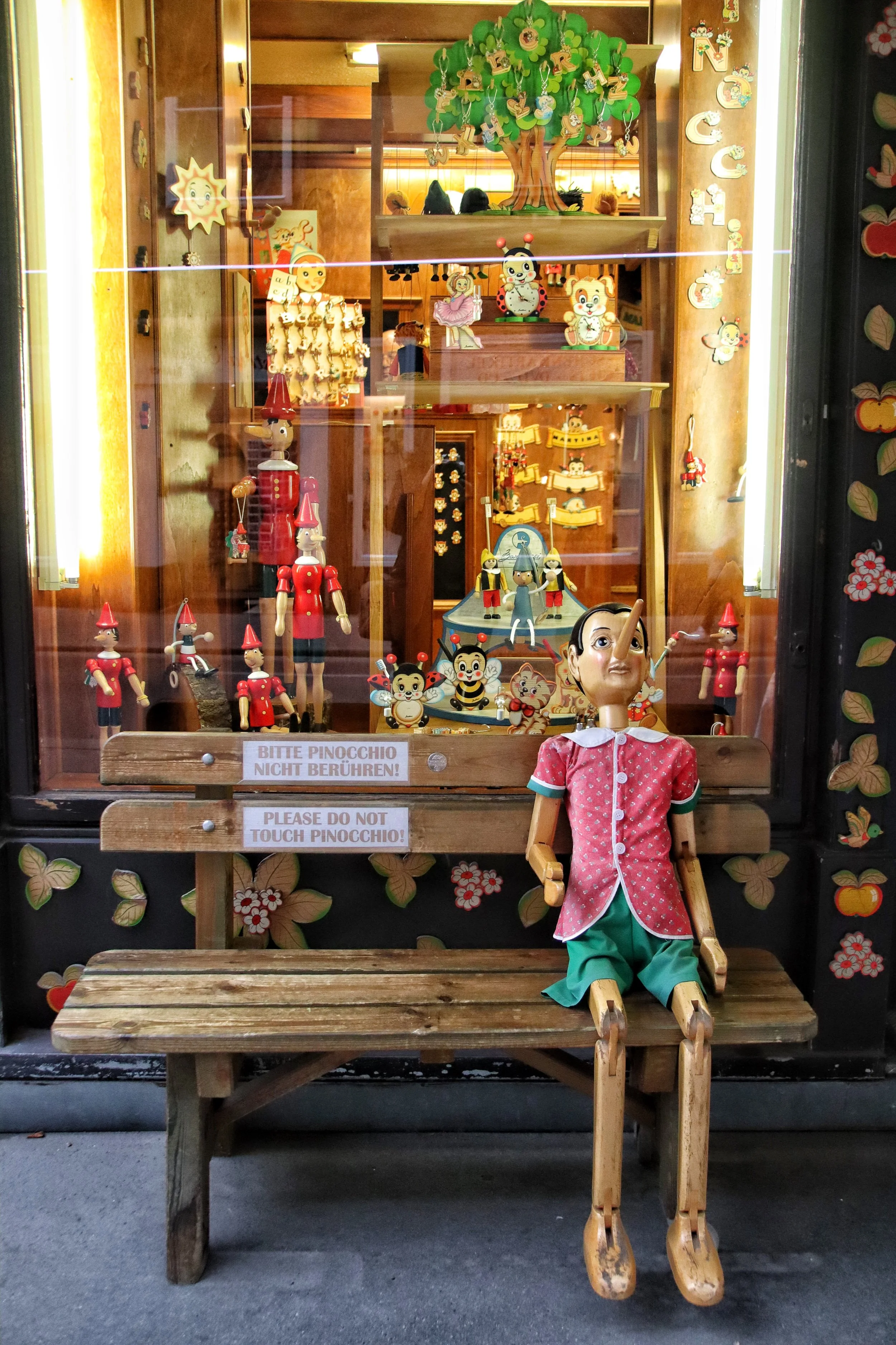In der Innenstadt gibt es nicht nur „kitschige“ Souveniers zu kaufen. Auf meinem Streifzug habe ich dieses Geschäft für Holzspielzeug entdeckt vor dem Pinocchio wacht.
