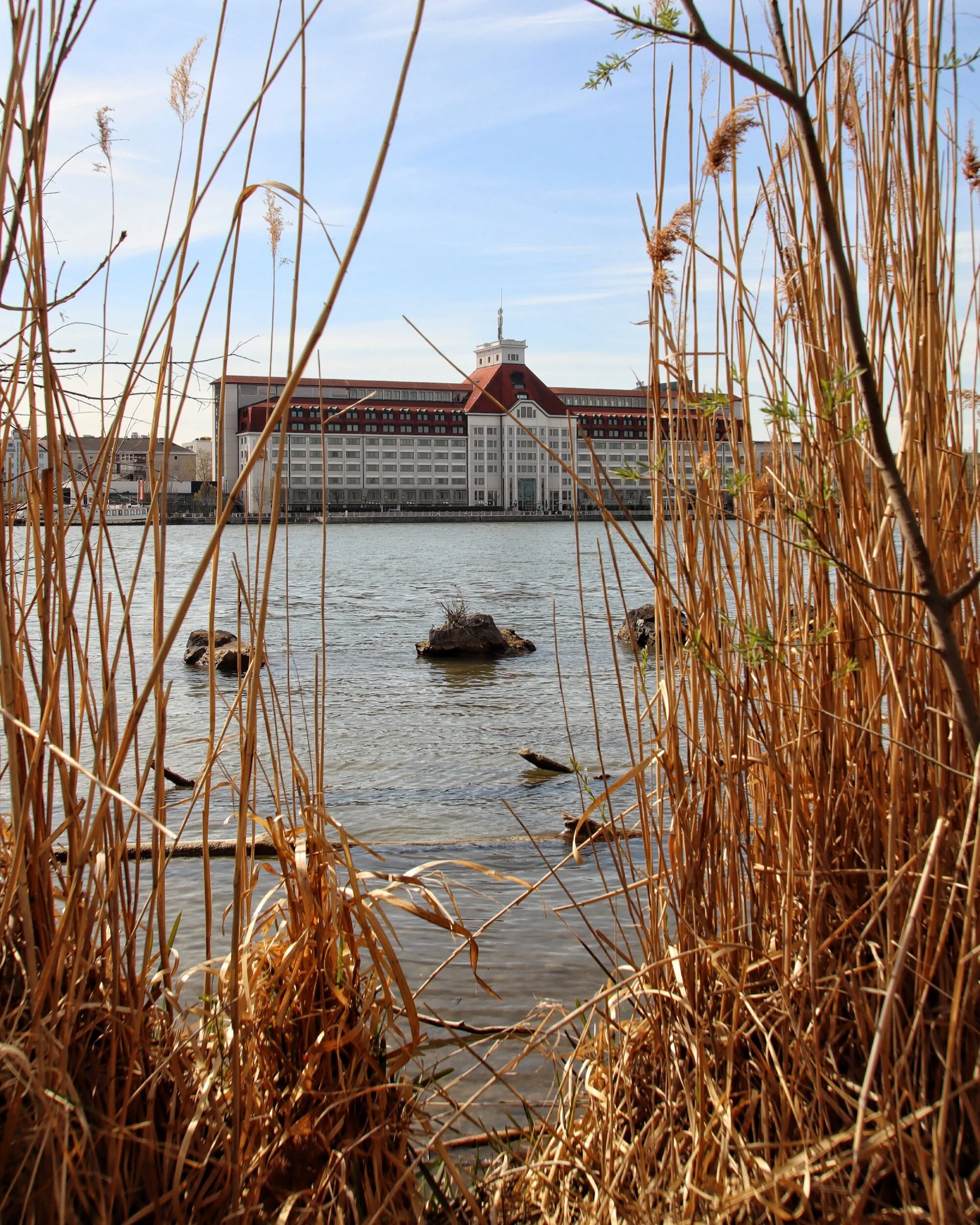 Heute war ich an der Donau spazieren. Das Foto zeigt das Hotel Hilton, ich kann mich noch gut daran erinnern als das Gebäude noch kein Hotel sondern ein Getreidespeicher war. 2 der Architekten waren übrigens Schüler von Otto Wagner..