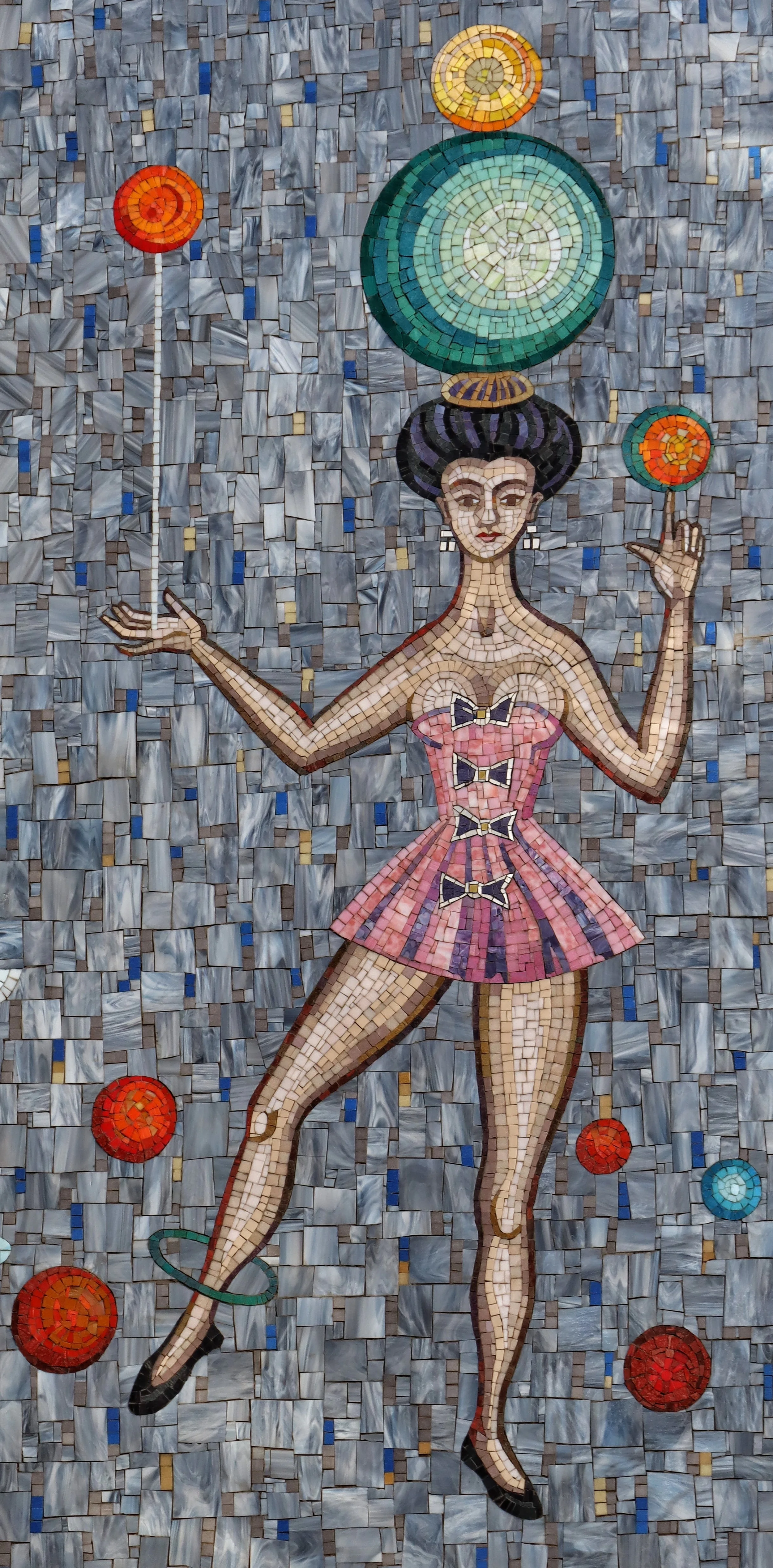 Heute gibt es ein Foto des Mosaiks das an den Zirkus Renz erinnert. Heute steht in der Weintraubengasse der Renzhof, der Zirkus wurde 1945 von Bomben zerstört. Eröffnet wurde der Zirkus übrigens am 18.02.1854.